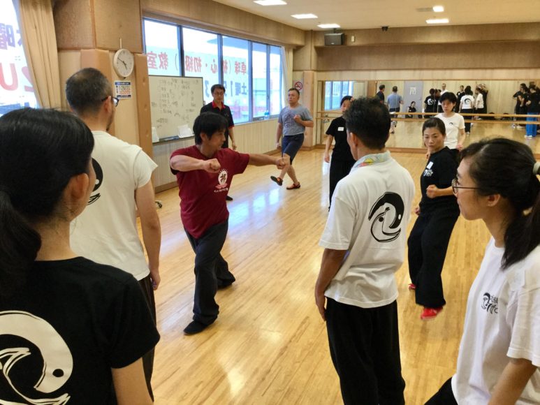 三日目は午前中から講習開始。この日も体操、基本腿法から単練を復習。流石に毎回繰り返し行っているので、動きの「質」が結構身に入ってきています。加えてこの後に学ぶ第二節、第三節の単練を解説し、午前の講習は終了しました。